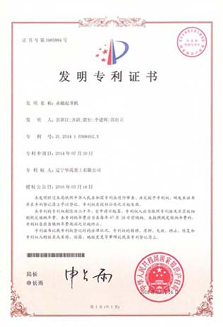 永磁起重机-专利发明证书